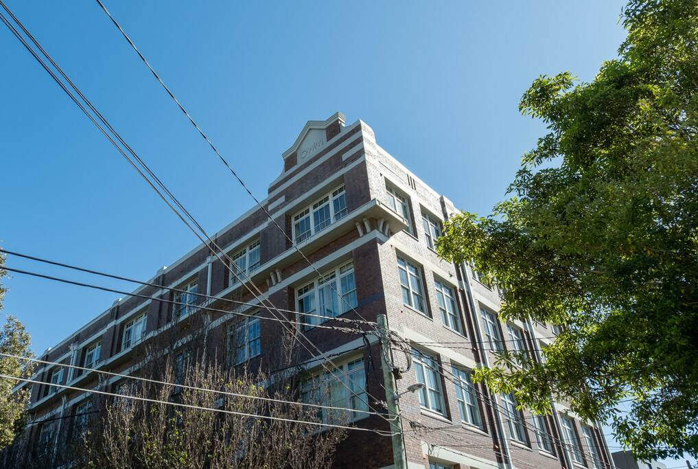 This sun-drenched one-bedroom apartment is located on the top corner of the historic Globe Mills. Originally built in 1921, the former wool mill was converted into luxury apartments in 2006. Atop its perch, sweeping views to the east and south flood the apartment with natural light. Surrounded by trees, the apartment is walking distance to The Factory Theatre, Enmore Theatre, and the hustle and bustle of Newtown. Inside, however, the double-glazed windows maintain a quiet and cosy sanctuary.